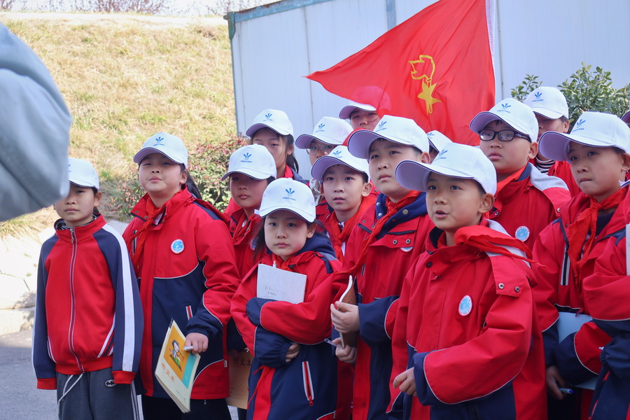 小學(xué)生在渠道旁聽長葛管理處工作人員講解南水北調(diào)知識