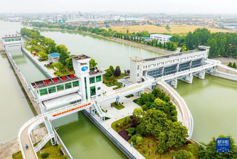 這是6月1日拍攝的位于江蘇省揚(yáng)州市江都區(qū)的南水北調(diào)東線一期工程邵仙套閘、邵仙閘洞(無人機(jī)照片)。