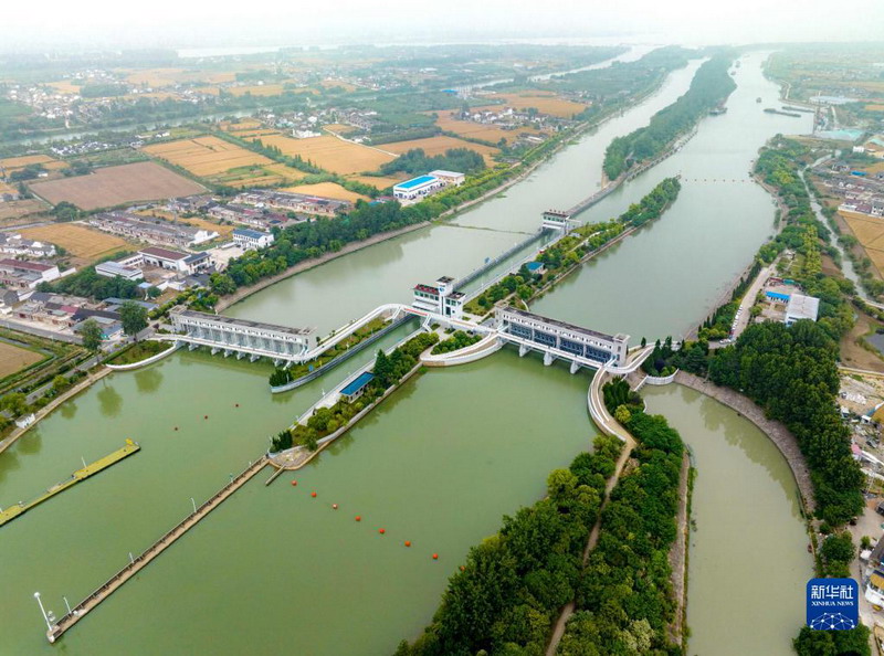 這是6月1日拍攝的位于江蘇省揚(yáng)州市江都區(qū)的南水北調(diào)東線一期工程運(yùn)鹽閘、邵仙套閘、邵仙閘洞(無人機(jī)照片)。