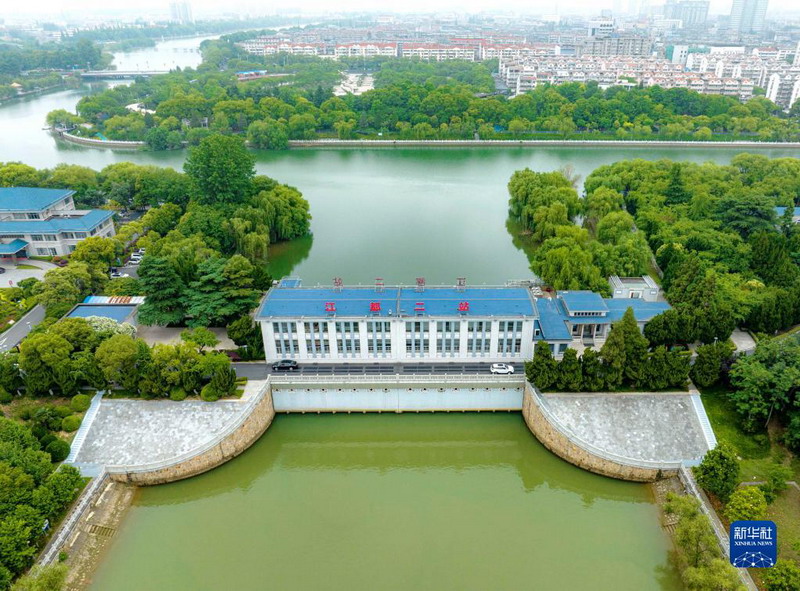 這是6月1日拍攝的位于江蘇省揚(yáng)州市江都區(qū)的南水北調(diào)東線源頭江都水利樞紐二站(無人機(jī)照片)。